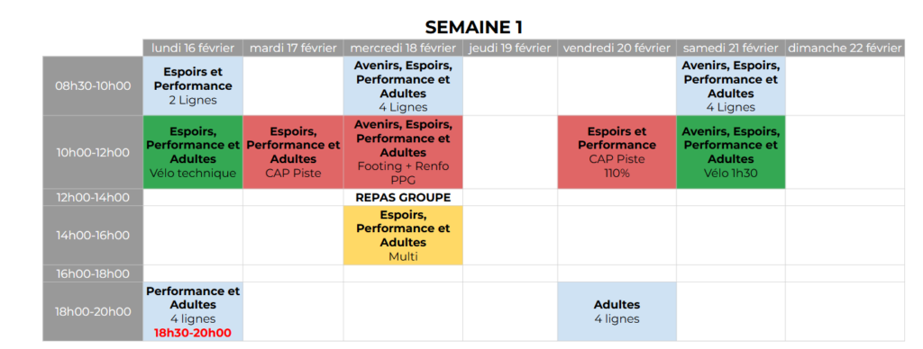 Entrainement vacances scolaires – février 2026